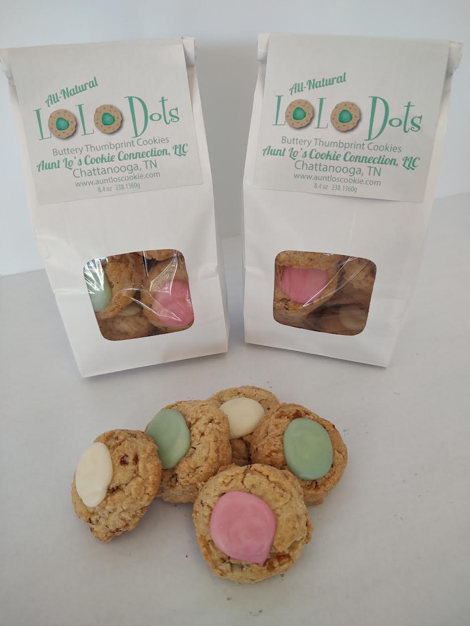 All Natural LoLo Dots- Just like our regular LoLo Dots just made with unbleached flour and in lighter colors from all natural colorants derived from plants. LoLo Dots' colors change with the season. If you'd like a custom order, please email Loren at auntloscookie@gmail.com